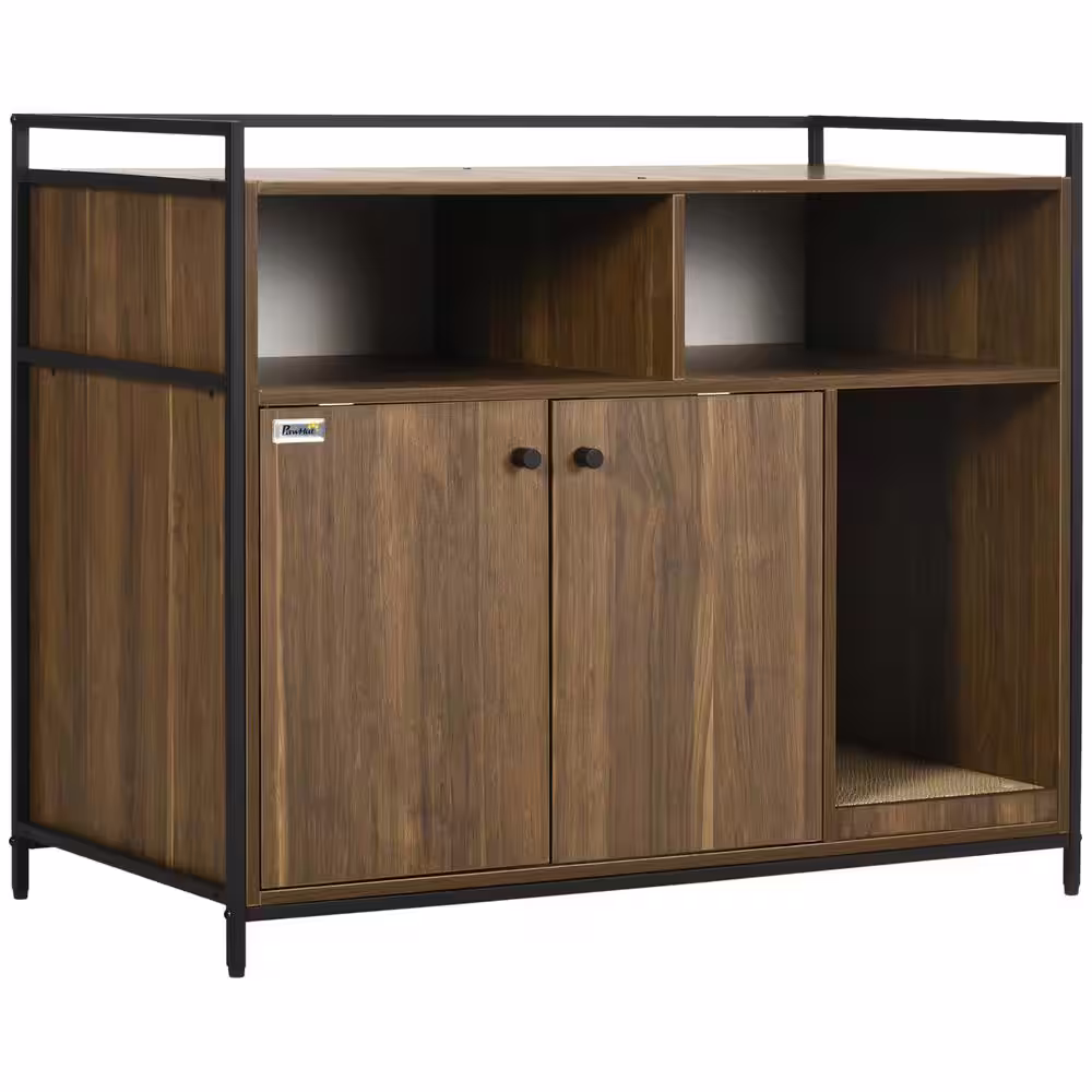 PawHut Hidden Cat Litter Box Enclosure with Scratching Pad, Brown