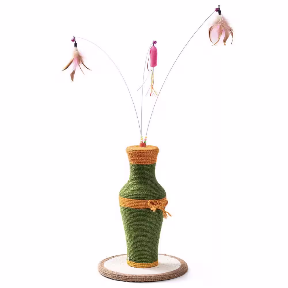 None Vintage Vase-Shaped Cat Scratching Post with 3 Feather Toys