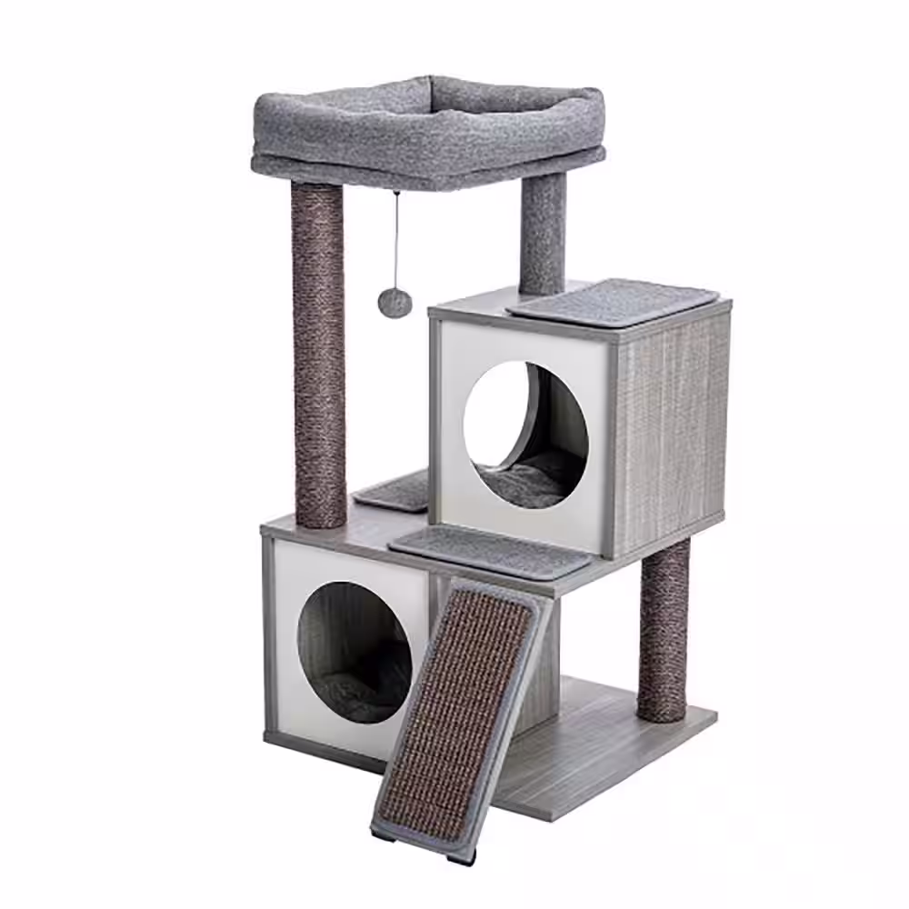 ANGELES HOME Gray Wood Multi-level Cat Tree with Scratching Posts and Cat Hammock