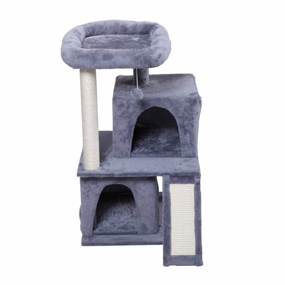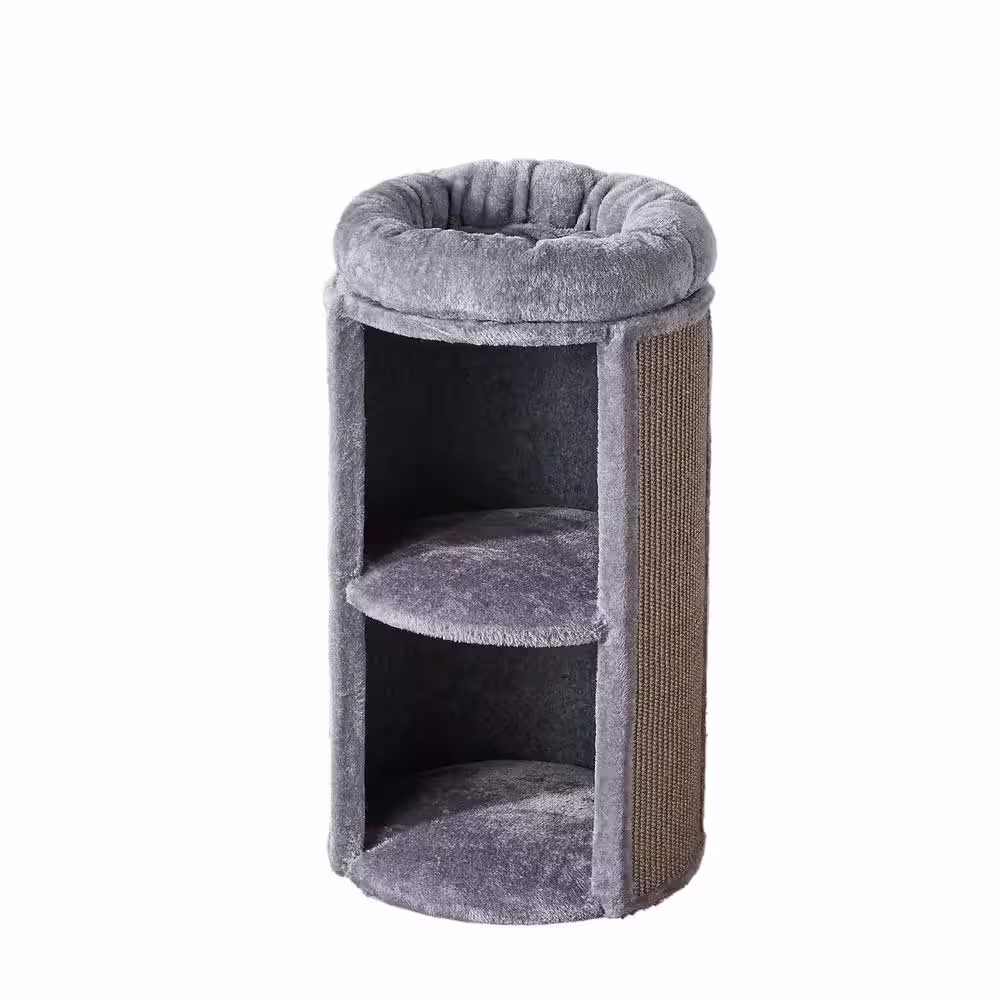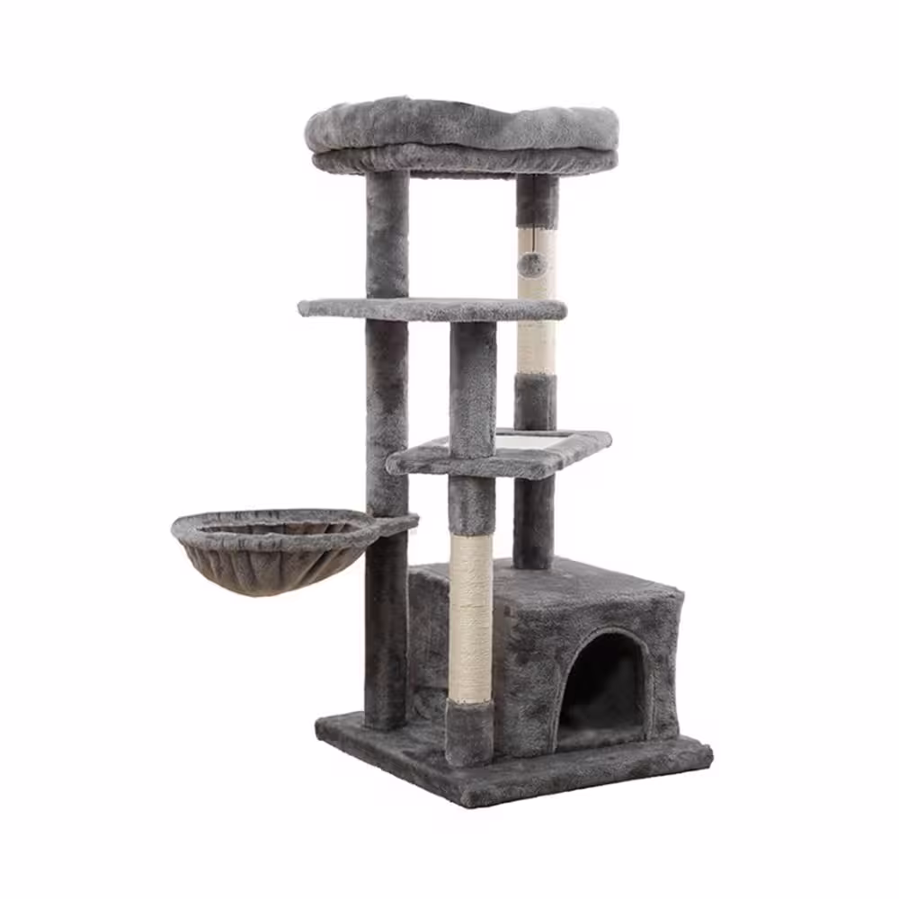 ANGELES HOME Gray Cat Climbing Tree with Plush Perchs and Scratching Post