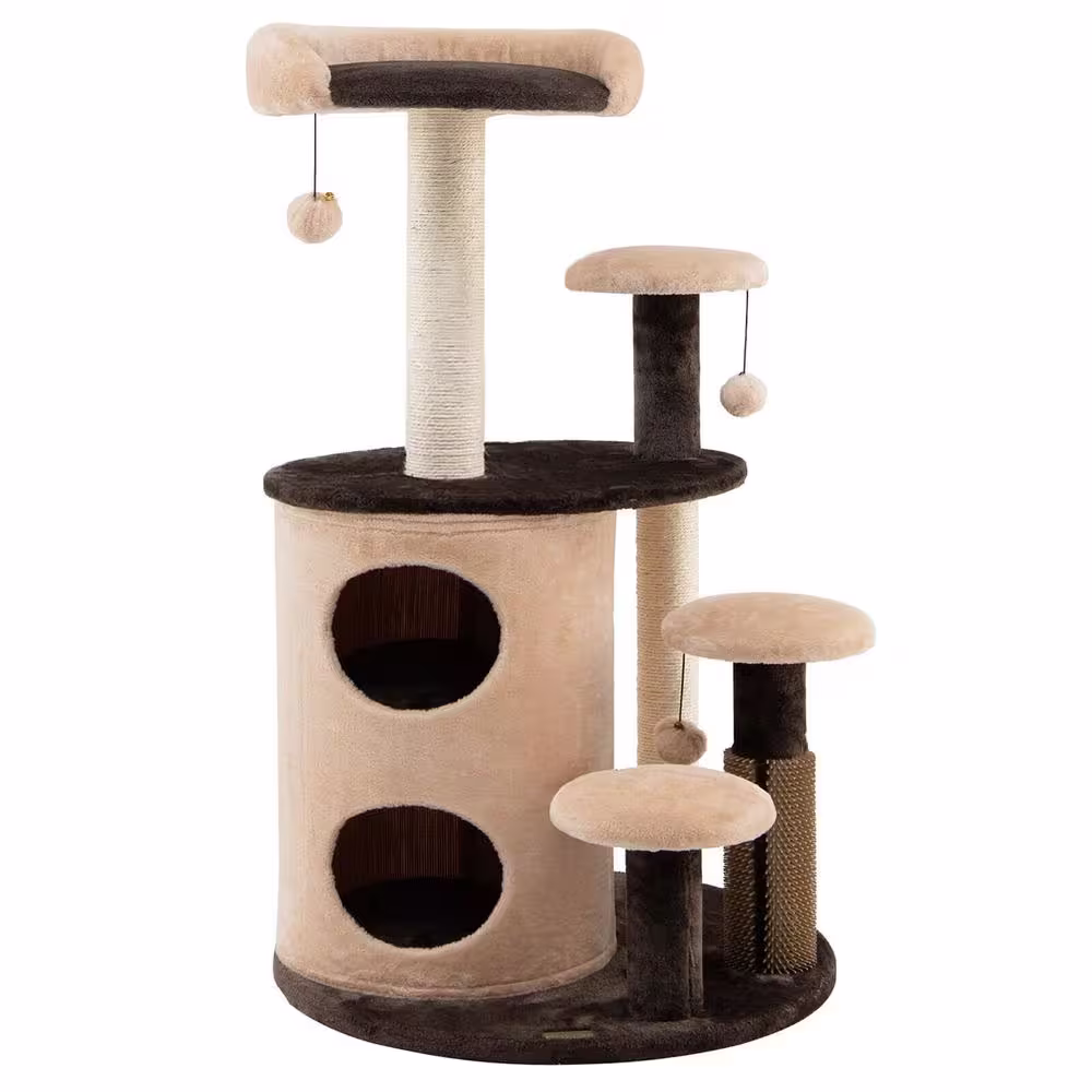 ANGELES HOME Brown 40 in. Cat Tree Tower Multi-Level Activity Tree with 2-Tier Cat-Hole Condo