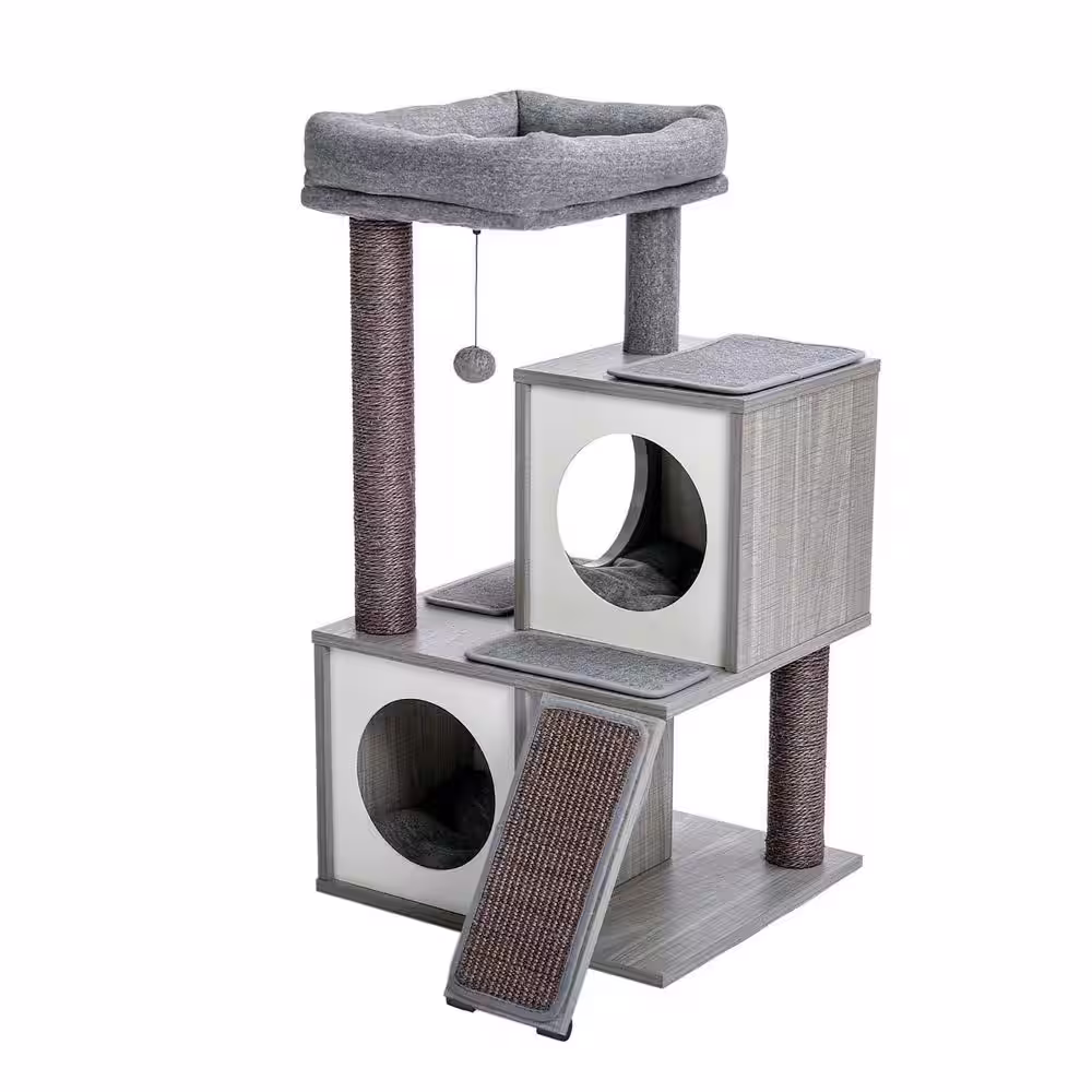 None 44.10 in. Multi-Level Pet Cats Scratching Posts and Trees with Spacious Condo, Cozy Hammock & Plush Top Perch in Gray