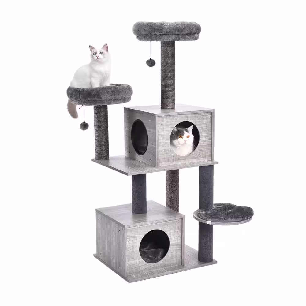 Foobrues 61.8 in. H Pet Cat Scratching Posts and Trees in Gray