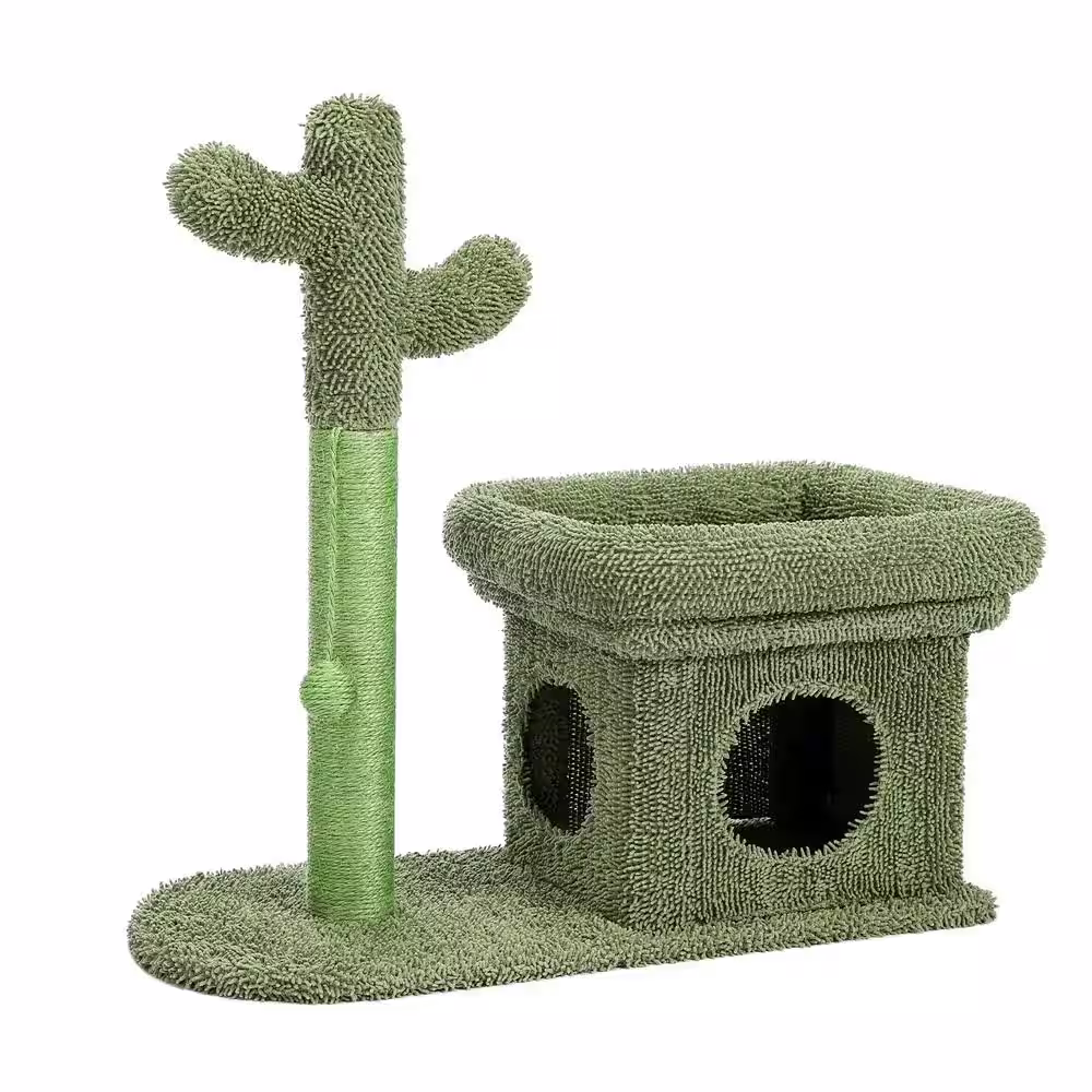 None 27.6 in. with Cactus Scratching Posts, Creative Scratching Posts, Stylish Cat Tree, with Ball and Cat House Green