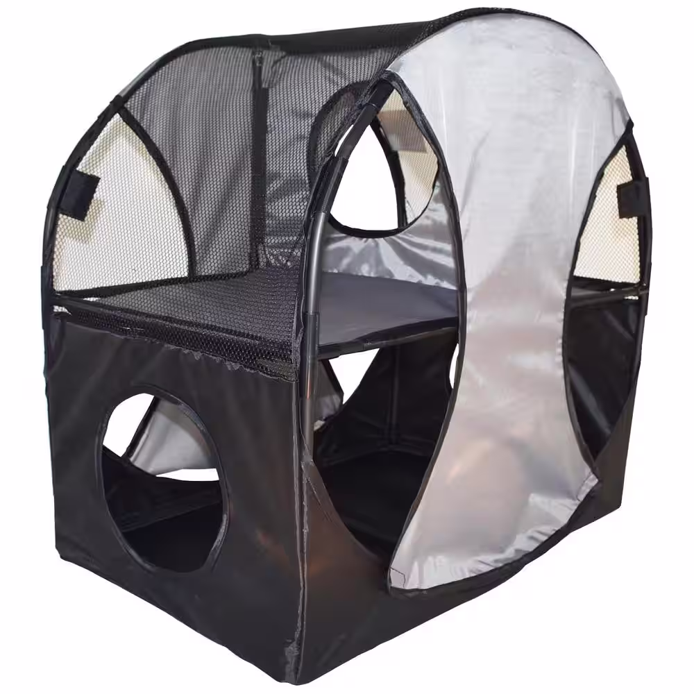 PET LIFE Grey and Black Kitty-Play Obstacle Travel Collapsible Soft Folding Pet Cat House