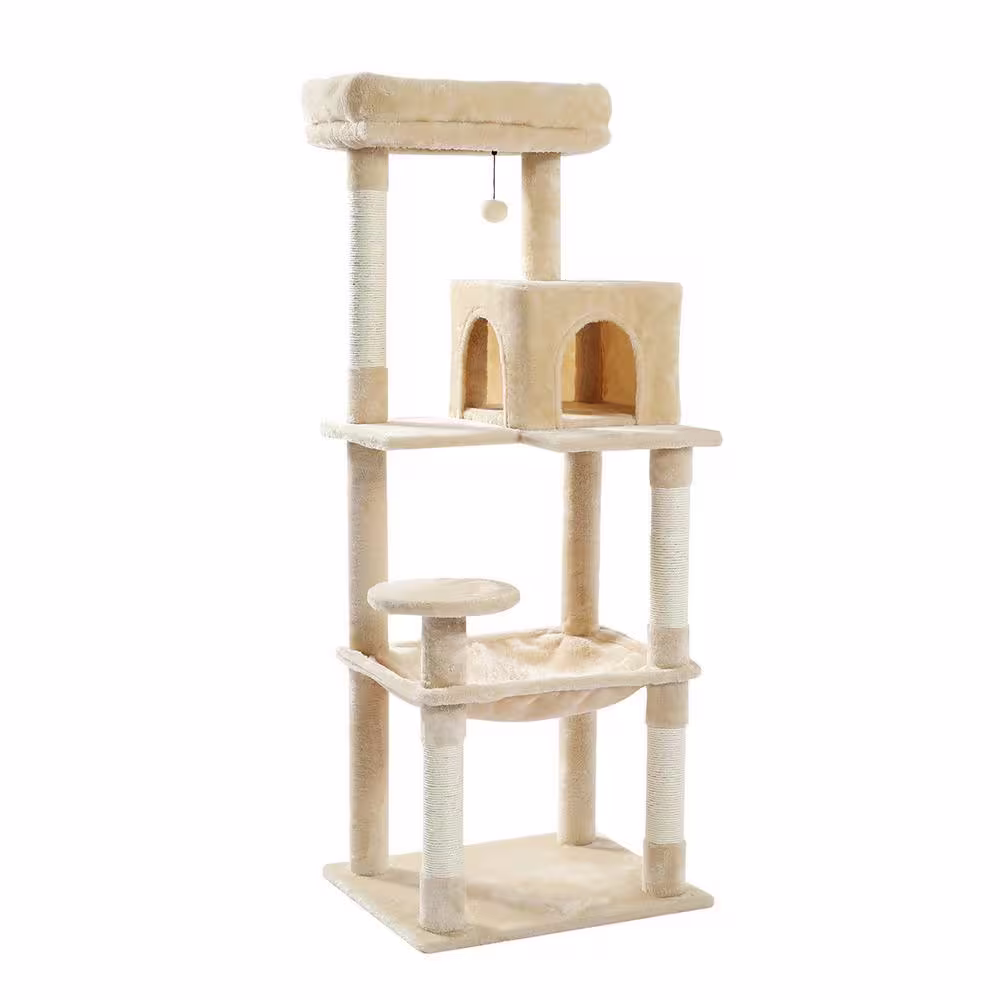 Foobrues Beige Plush Sisal Scratcher Cat Tree Cat House