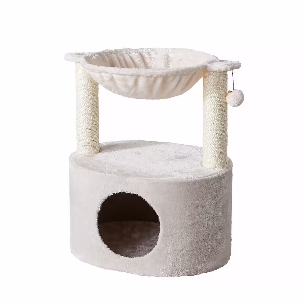 Two By Two Holly Cat Tree with Condo and Hammock Cream