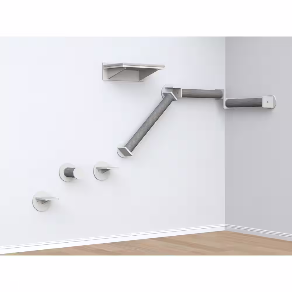 TRIXIE Wall Mount System, Cat Sisal Scratching Posts, Corner Platforms, Elevated Cat Playground Gray/White (Set 6, 7-Pieces)
