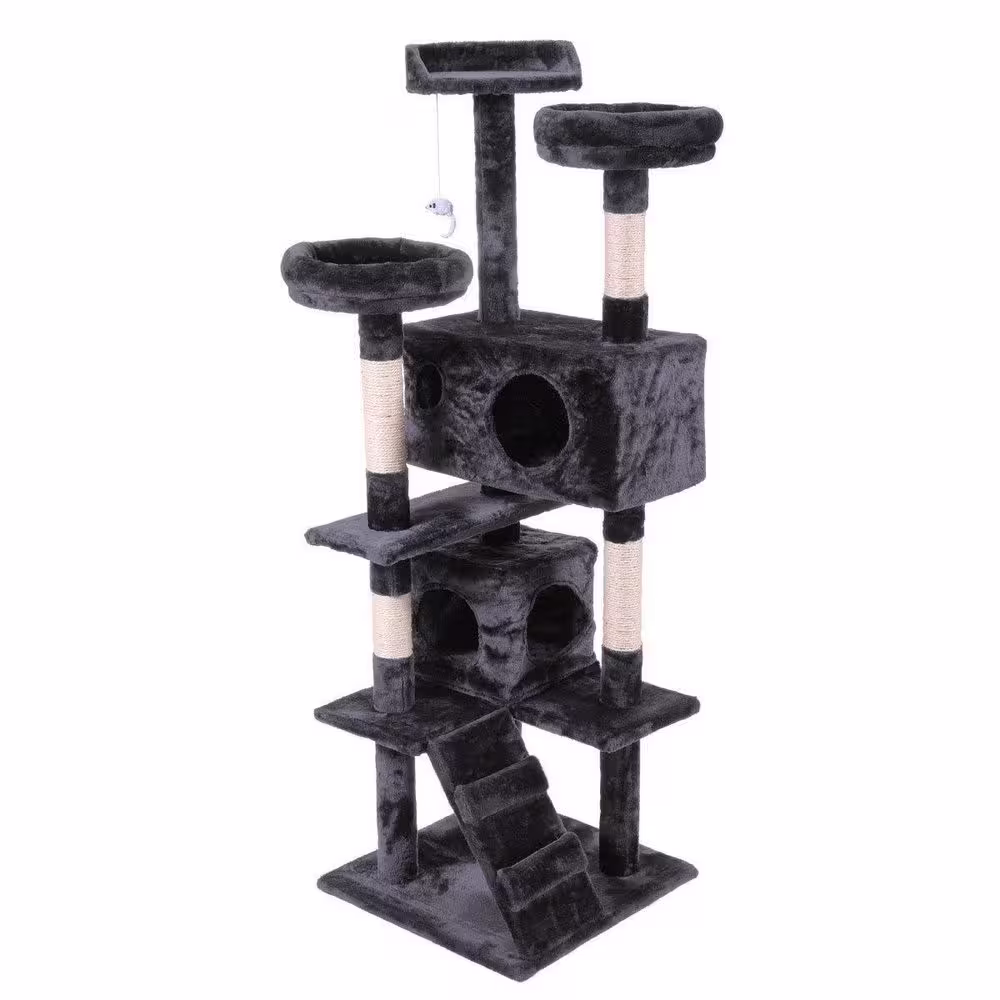 ANGELES HOME Gray Multi-Level Cat Climbing Tree with Scratching Posts and Large Plush Perch