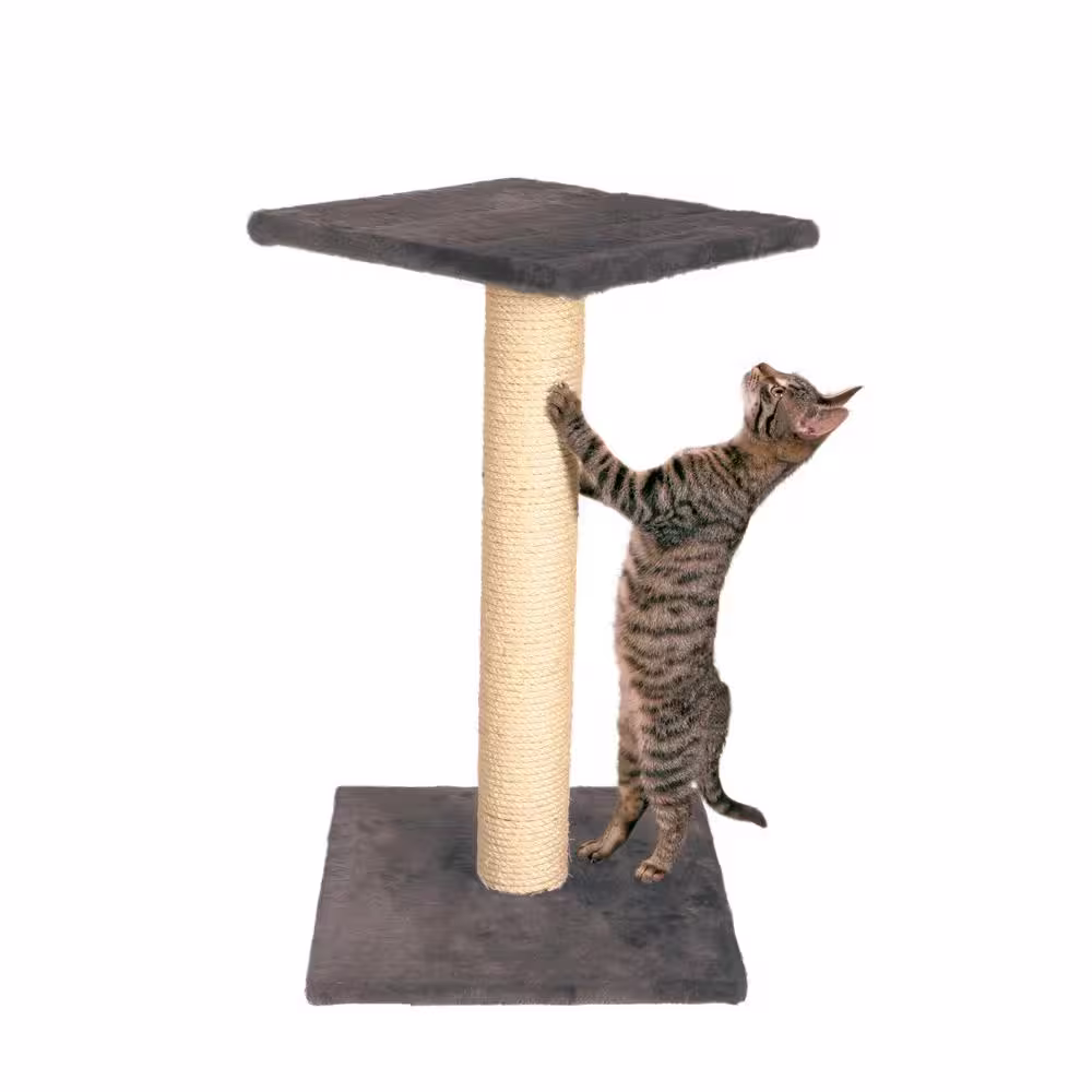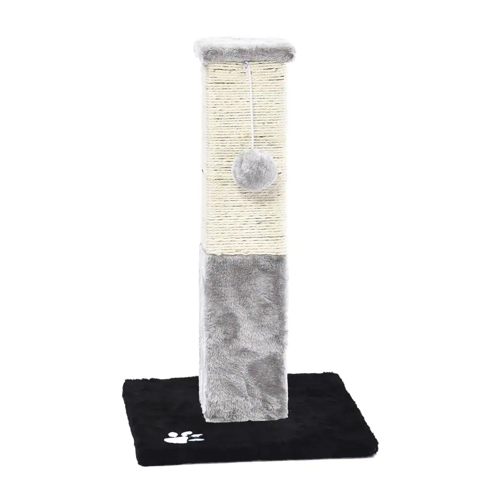 CAT CRAFT Plush and Sisal Square Cat Scratching Post with Plush Hanging Cat Toy, Gray/Natural
