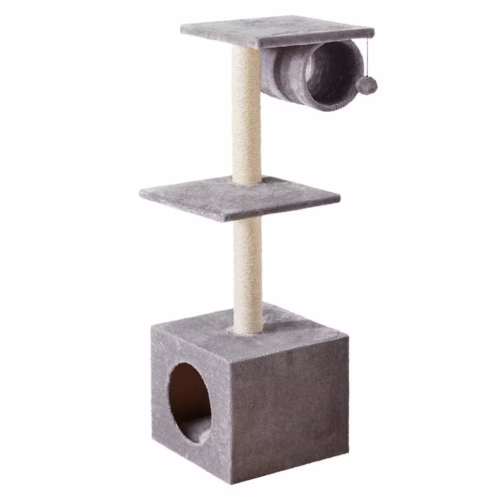 Two By Two Aspen 3-Level, Cat Tree with Condo and Tunnel, Grey