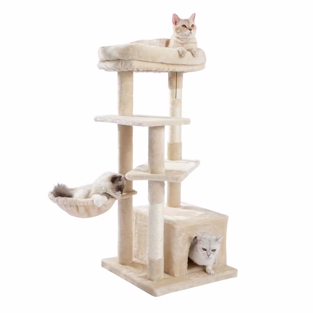 Foobrues Cat Tree for Indoor Cats, 42 in. Multi-Level Cat Tower with Sisal Covered Scratching Posts and Spacious Condo