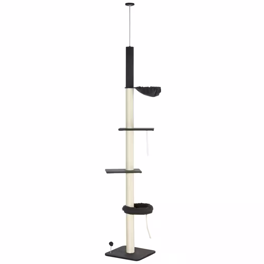 PawHut Cat Tree, Height Adjustable W/Carpeted Platforms, Cozy Bed, Scratching Post and Toy Ball for Indoor Cats