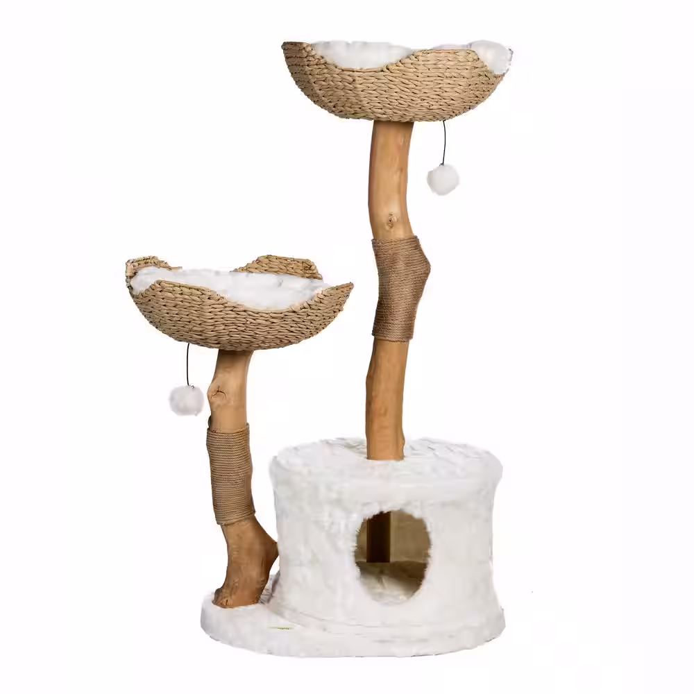 ANGELES HOME Wood Modern Tall Cat Tree Tower with Scratch Posts and Washable Mats