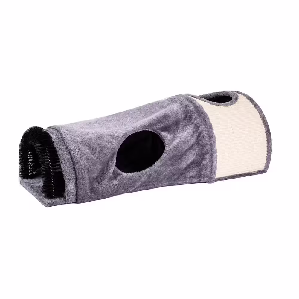 None Small Gray Fabric Bed Collapsible Cat Tunnel with Sisal Board