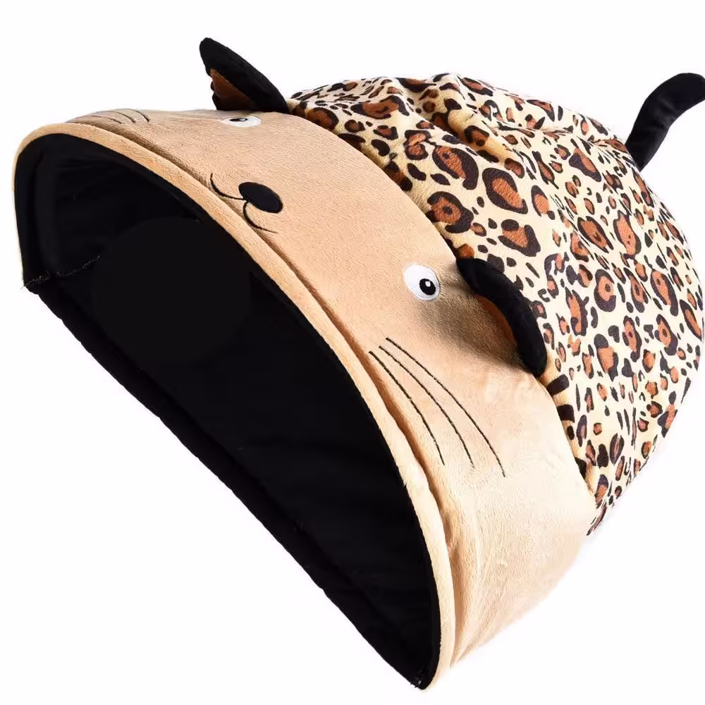 None Plush Cave Cat Bed with Crinkle Sound, Cheetah