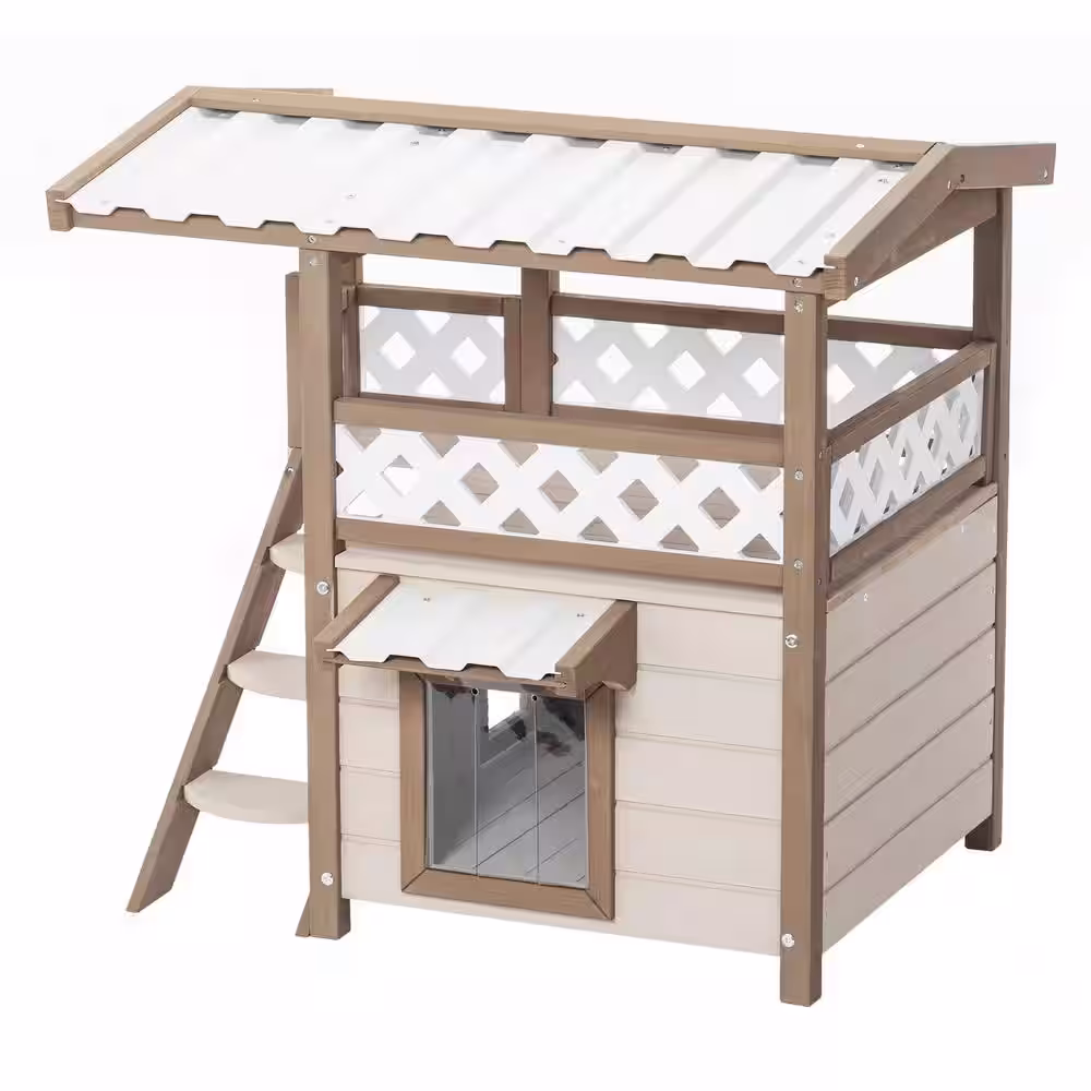 None Feral Cat Hous Kitty Houses with Durable PVC Roof Escape Door Curtain and Stair 2 Story Design Perfect for Multi Cats