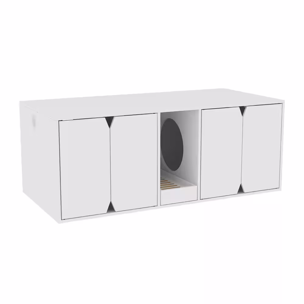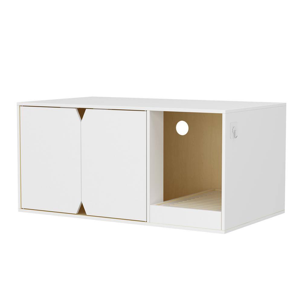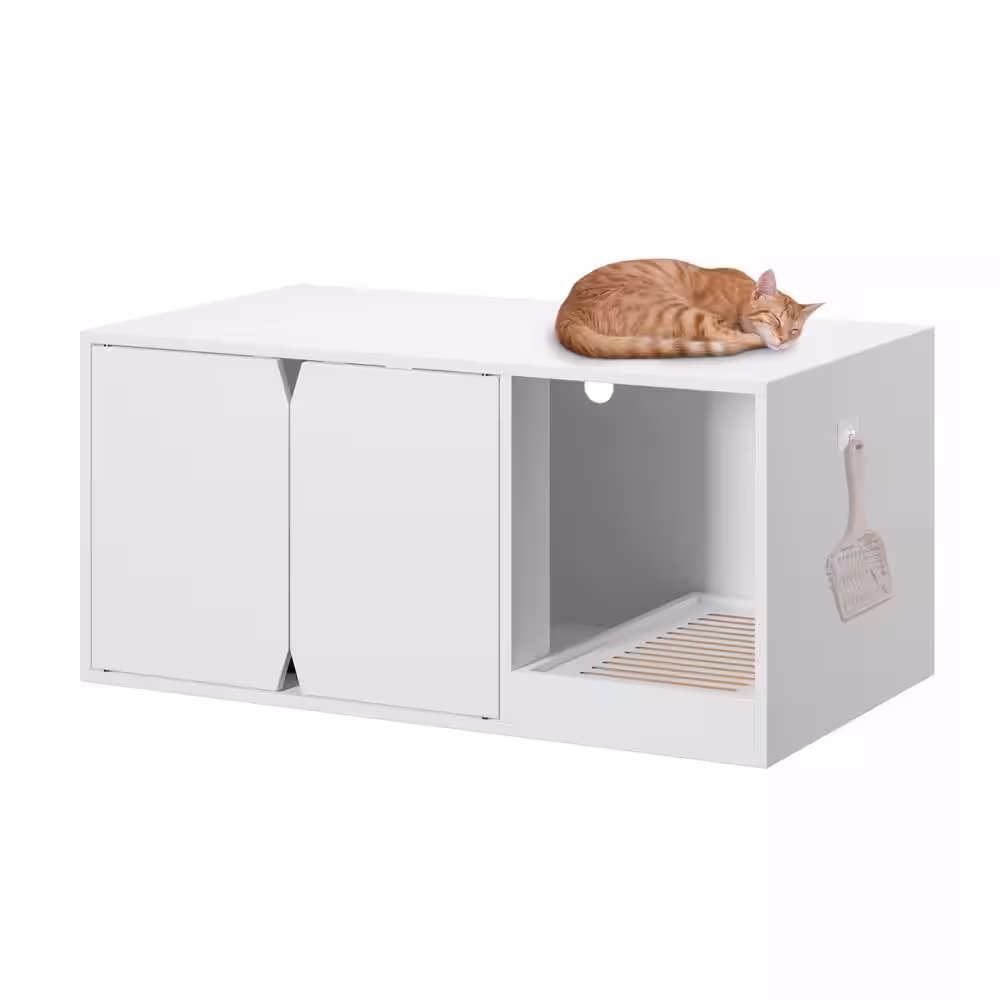 None Cat Hidden Litter Box Enclosure Cabinet, Indoor Modern Wood Large Stackable Cat Washroom Storage Cabinet, White