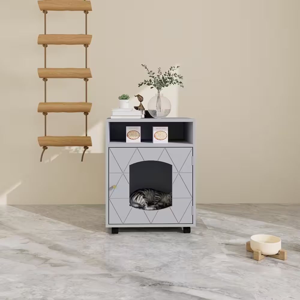 None Pet House Hidden Cat Home Side Table Suitable for Bedroom Living Room Study and Other Spaces in Gray