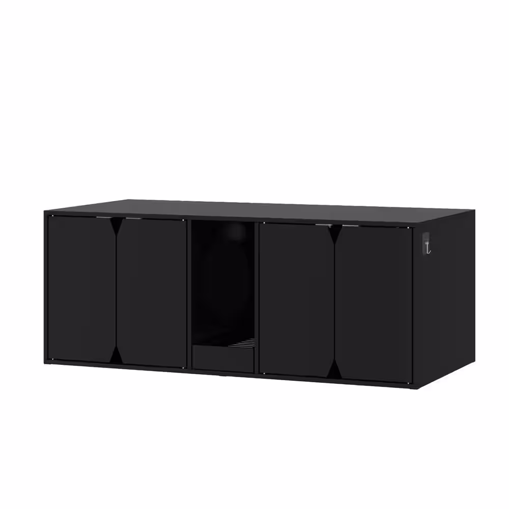 None Cat House Furniture for 2 Cats, Large Modern Wooden 4-Door Cat Washroom with Double Room and Litter Catch, Black
