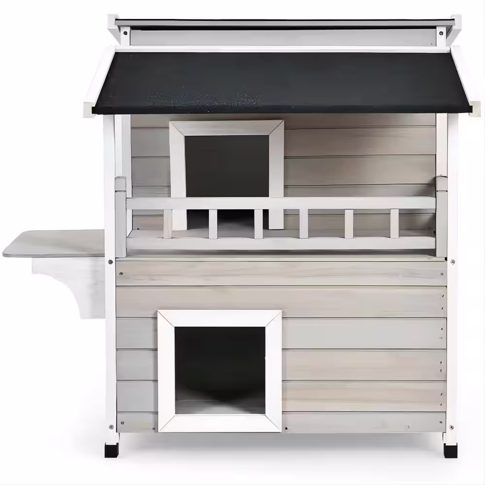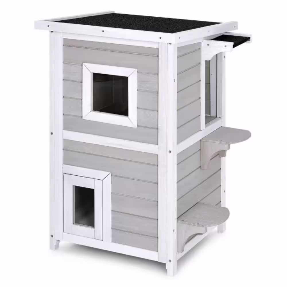 ANGELES HOME Indoor Outdoor Wooden 2-Story Cat House Condo Small Pet House
