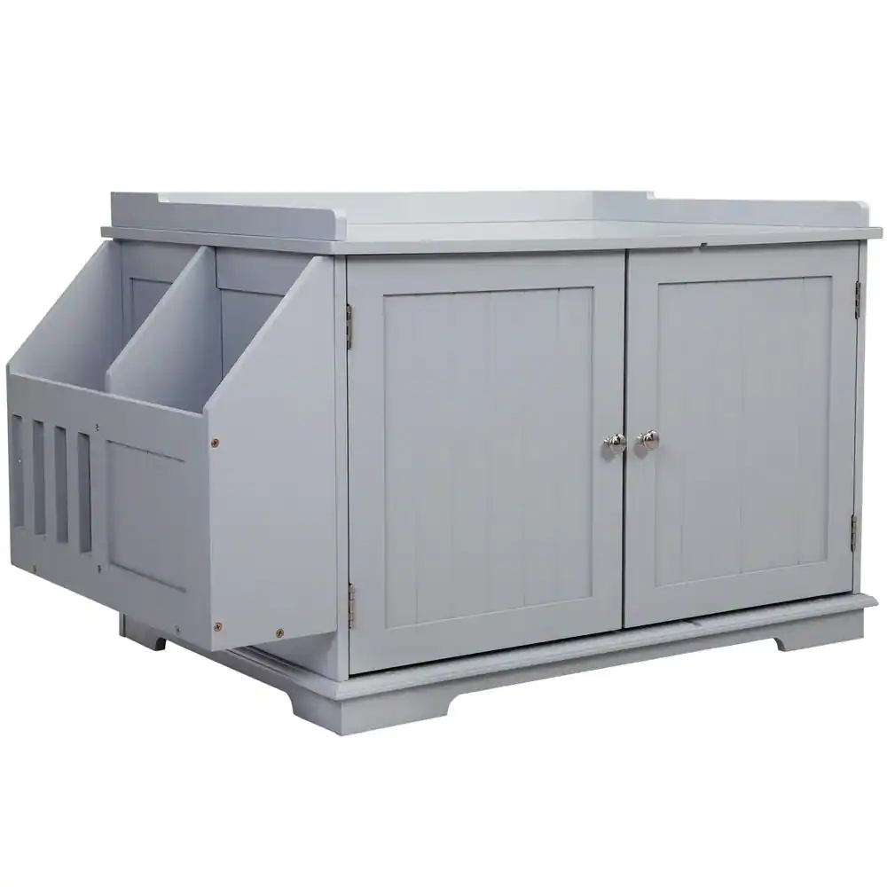 None Wooden Cat Litter Box Enclosure with Magazine Rack