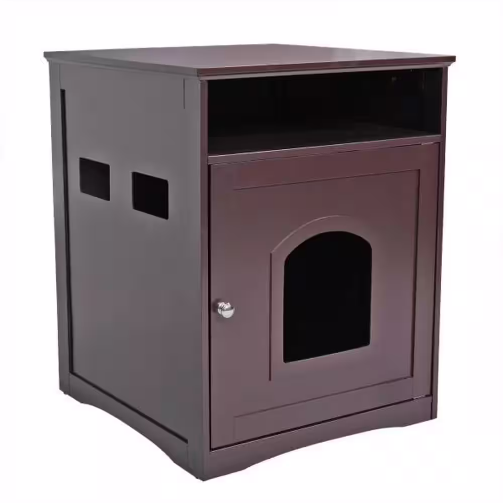 None Metal and Wood Pet Side Table Hidden Cat Room with Storage Shelf for Living Room in Dark Brown