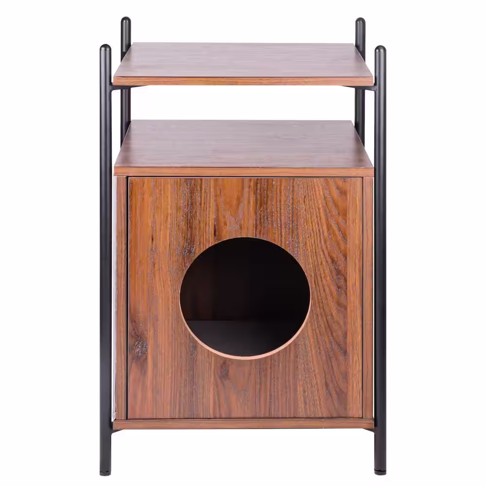 None Metal and Wood Pet Side Table Hidden Cat Room with Storage Shelf for Living Room in Brown