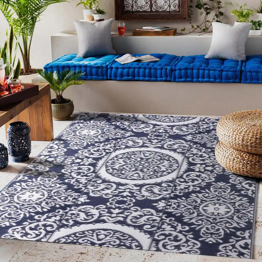 Nuu Garden Blue and White 5 ft. x 7 ft. Rectangle Plastic Moroccan Waterproof Fade Resistant Indoor/Outdoor Area Rug