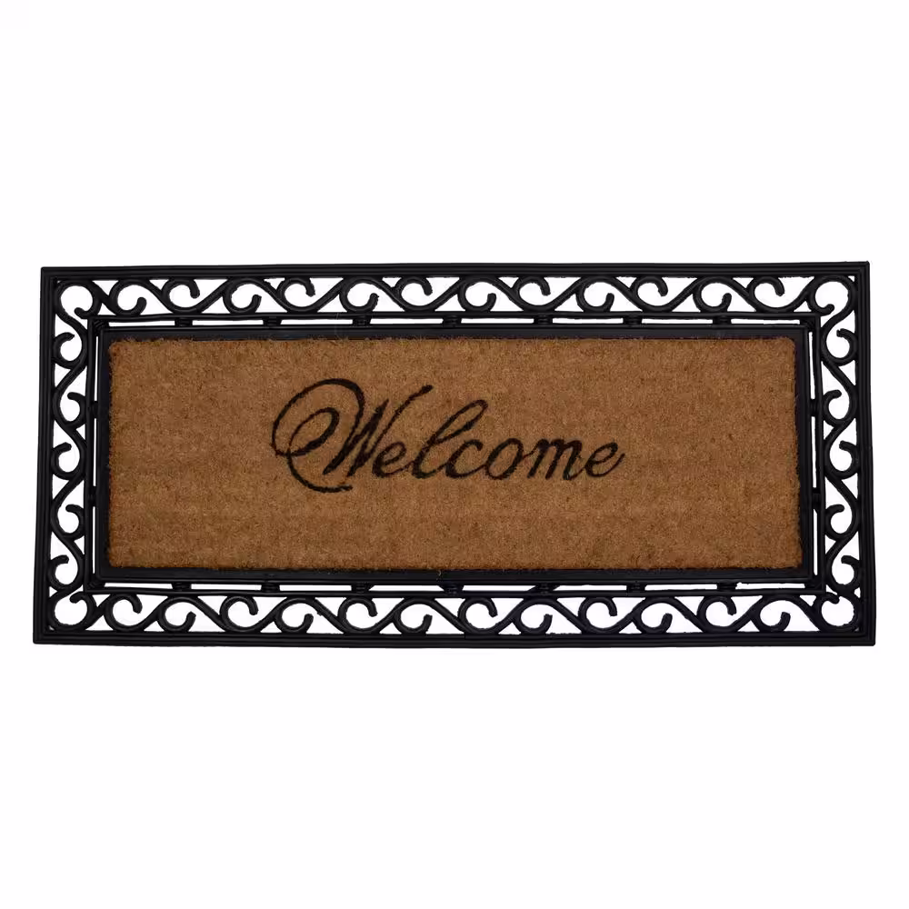 Northlight Black and Natural Coir Rectangular "Welcome" 22 in. x 48 in. Door Mat