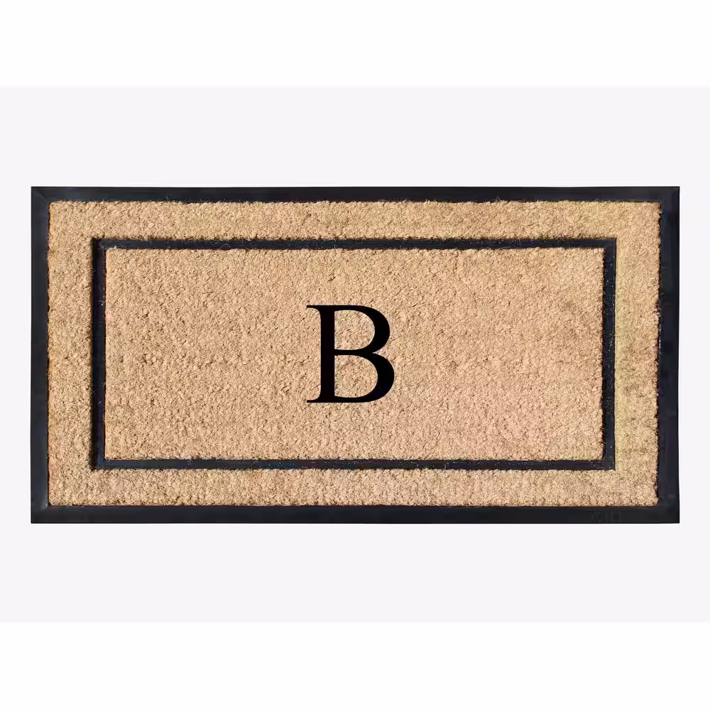 A1 Home Collections A1HC Border Beige 24 in. x 39 in. Rubber and Coir Heavy-Duty Outdoor Entrance Durable Monogrammed B Door Mat