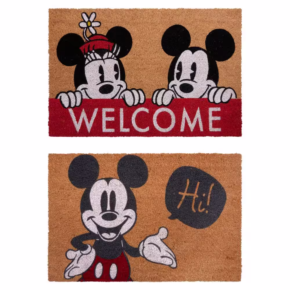 Disney Mickey Mouse Hi and Welcome 20 in. x 34 in. Coir Door Mat (2-Pack)