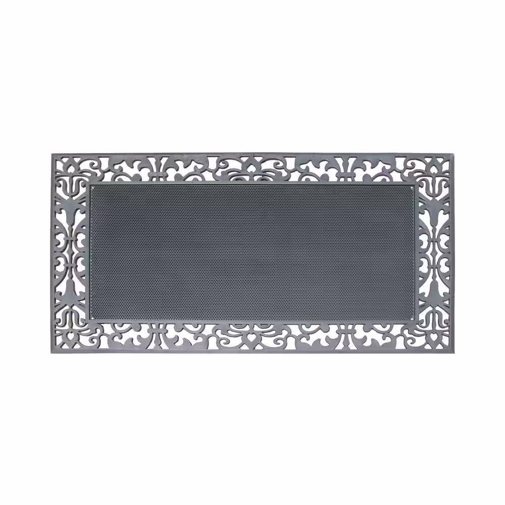 A1 Home Collections A1HC Paisley Border Black 30 in. x 48 in. Rubber Pin Mat Heavy Duty Double Door Mat