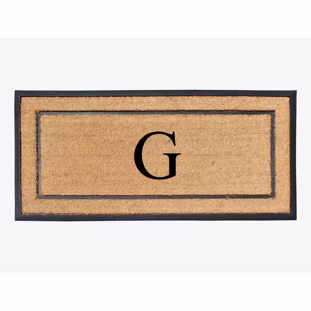 A1 Home Collections A1HC Heavy Duty Frame Molded Double Door Mat Black/Beige 24 in. x 48 in. Rubber and Coir Monogrammed G Door Mat