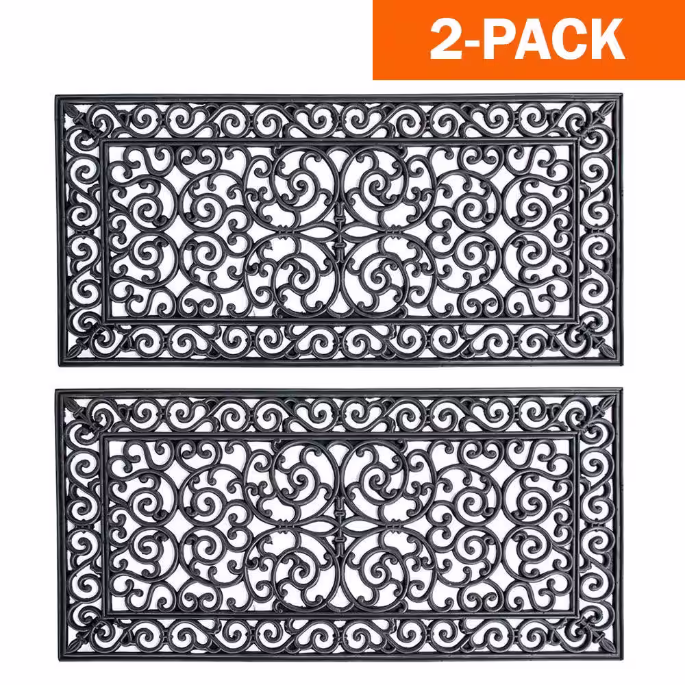 AmeriHome 24 in. x 48 in. Decorative Scrollwork Indoor/Outdoor Entryway Rubber Door Mat (2-Pack)