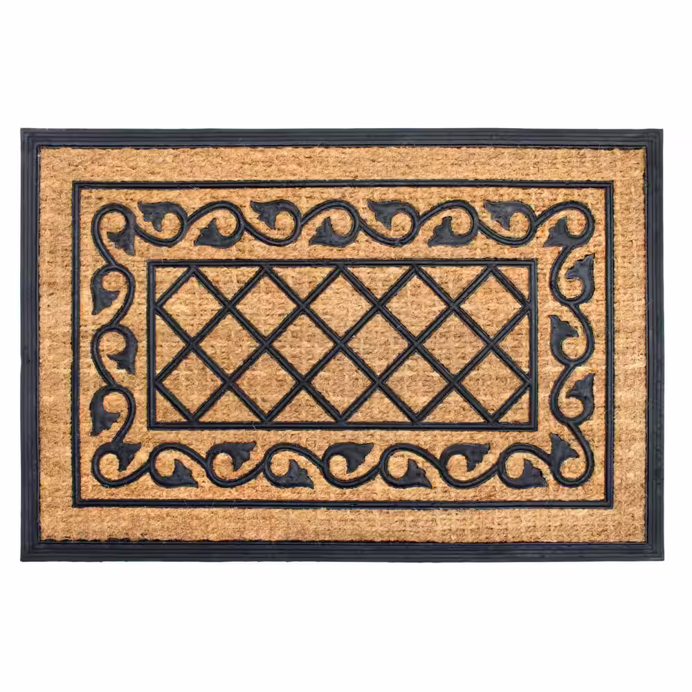 None Natural 24 in. x 36 in. Rubber Coir Honeysuckle Door Mat