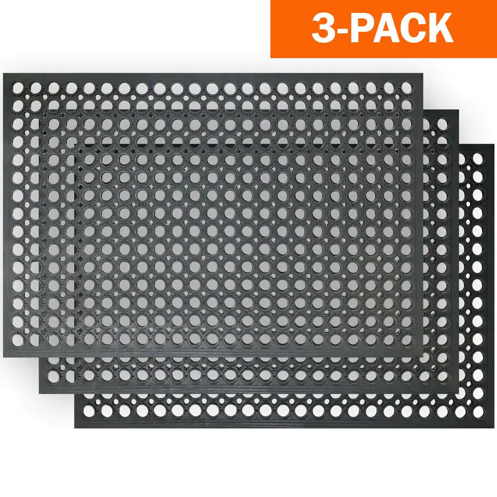 Buffalo Tools Indoor/Outdoor Durable Anti-Fatigue 24 in. x 36 in. Industrial Commercial Home Restaurant Bar Rubber Floor Mat (3-Piece)