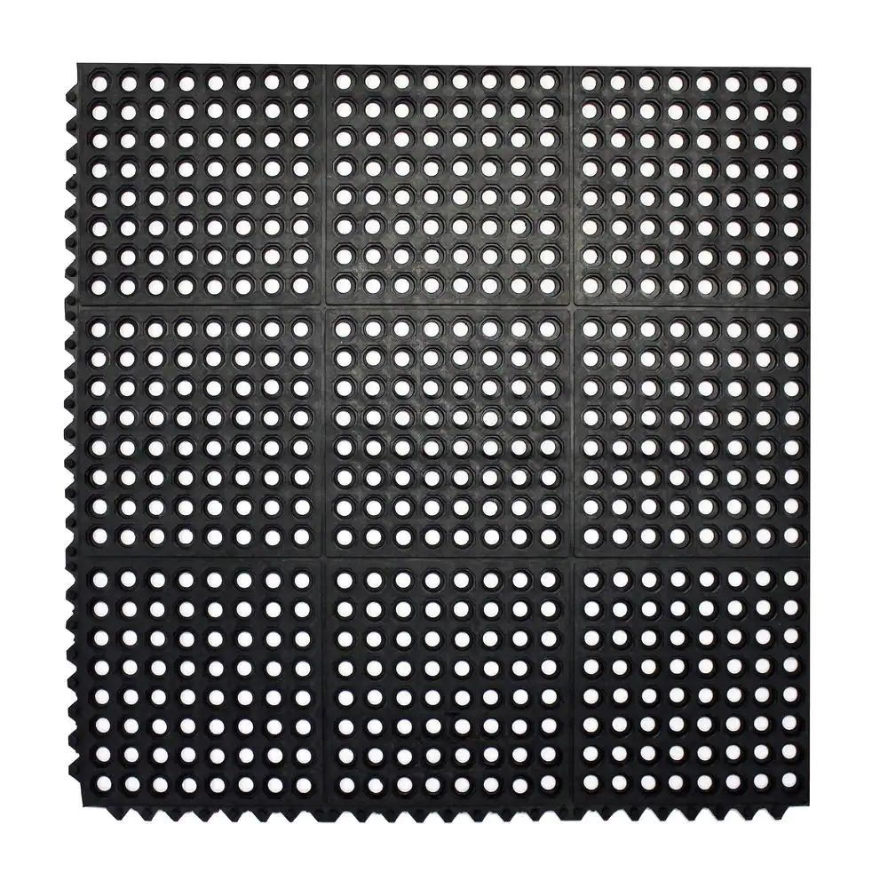 ENVELOR:Envelor Durable Interlocking Black 36 in. x 36 in. Anti-Fatigue Rubber Commercial Floor Mat (Set of 4)