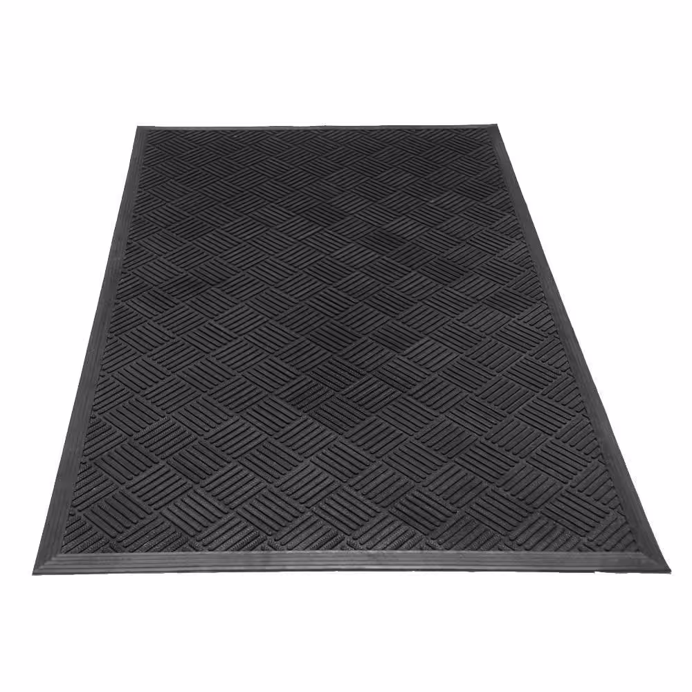 Rubber-Cal Dura-Scraper Checkered 60 in. x 36 in. Black Rubber Door Mat