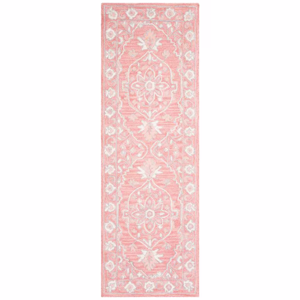 SAFAVIEH Micro-Loop Pink/Ivory 2 ft. x 11 ft. Floral Border Runner Rug
