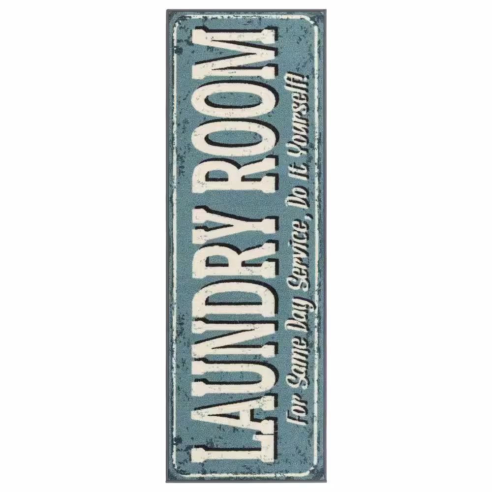 Ottomanson Laundry Collection Non-Slip Rubberback 2x5 Laundry Room Runner Rug, 20 in. x 59 in., Baby Blue