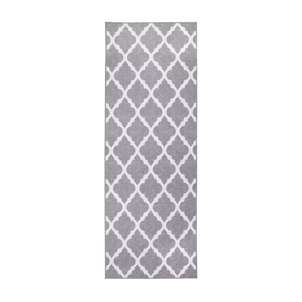 My Magic Carpet Moroccan Trellis Grey 2.5 ft. x 7 ft. Machine Washable Runner Rug
