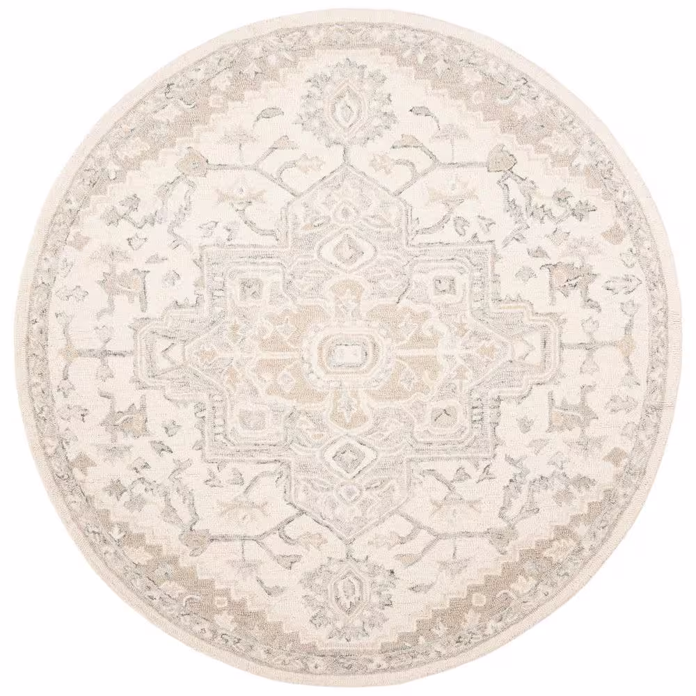 SAFAVIEH Micro-Loop Ivory/Beige 7 ft. x 7 ft. Floral Medallion Round Area Rug