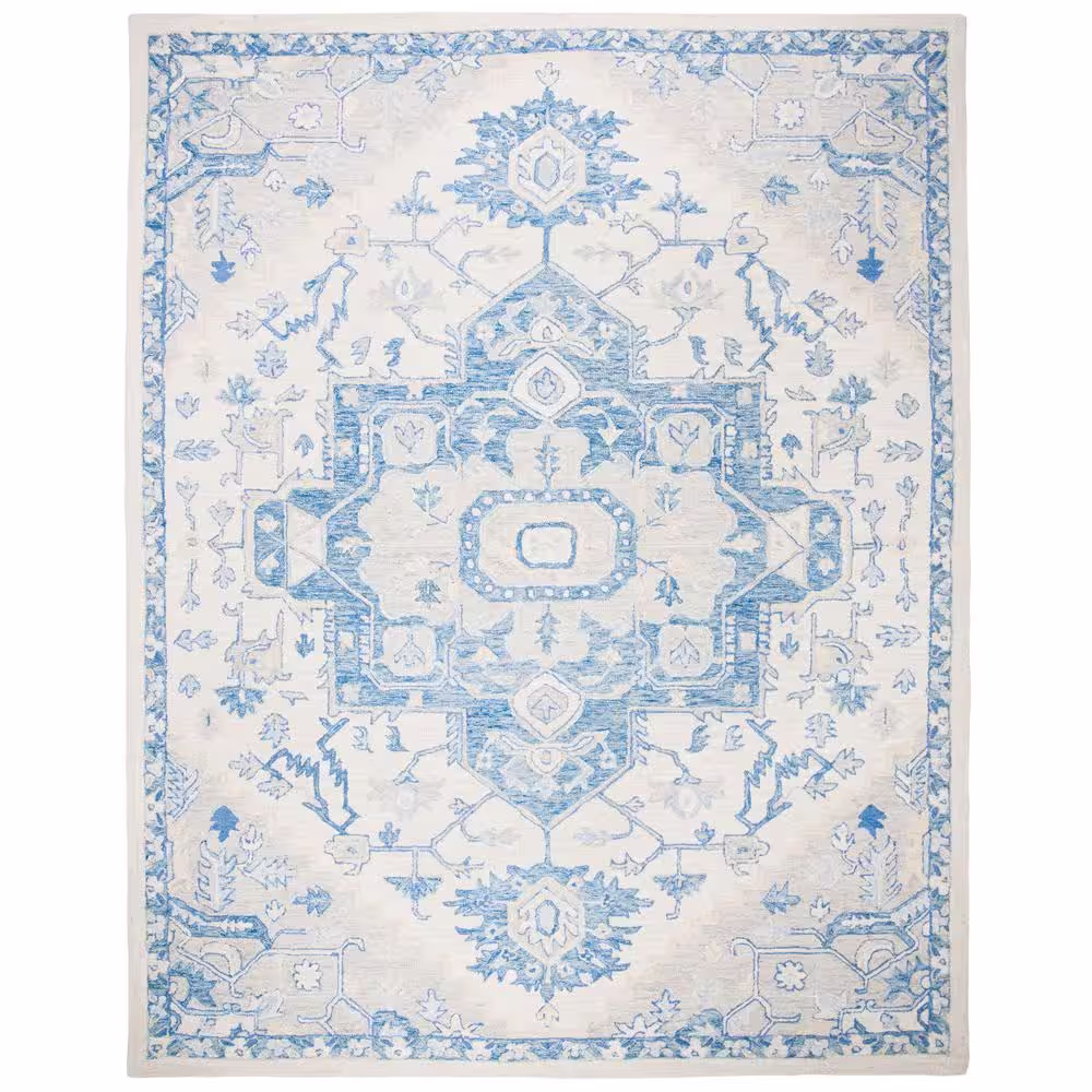 SAFAVIEH Micro-Loop Ivory/Blue 10 ft. x 14 ft. Floral Medallion Area Rug