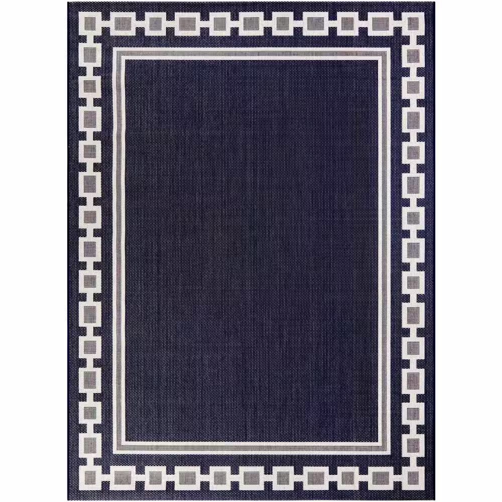 Hampton Bay Chain Border Navy 8 ft. x 10 ft. Indoor/Outdoor Patio Area Rug