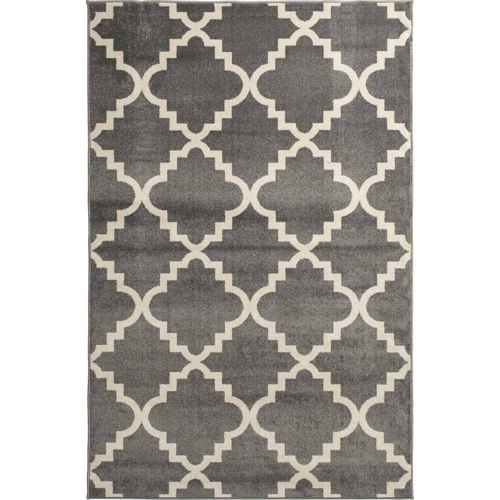 Hampton Bay Border Charcoal Gray 5 ft. 3 in. x 7 ft. Polypropylene Indoor/Outdoor Patio Area Rug