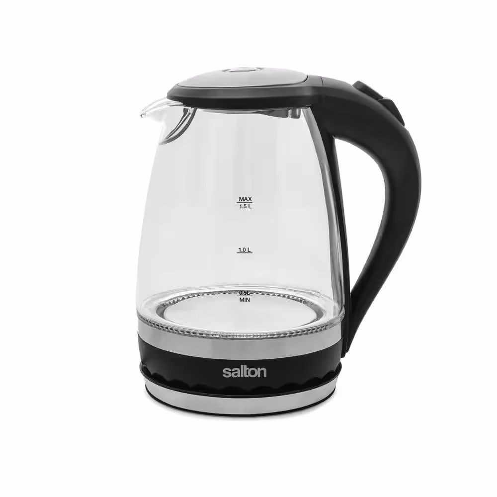Salton 6-Cup Stainless Steel Cordless Electric Glass Kettle with Automatic Safety Shut Off
