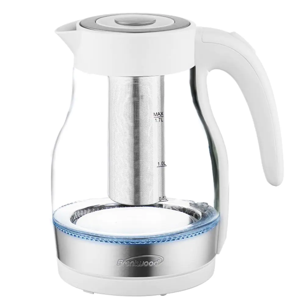 Brentwood Glass 1.7 Liter Electric Kettle with Tea Infuser in White