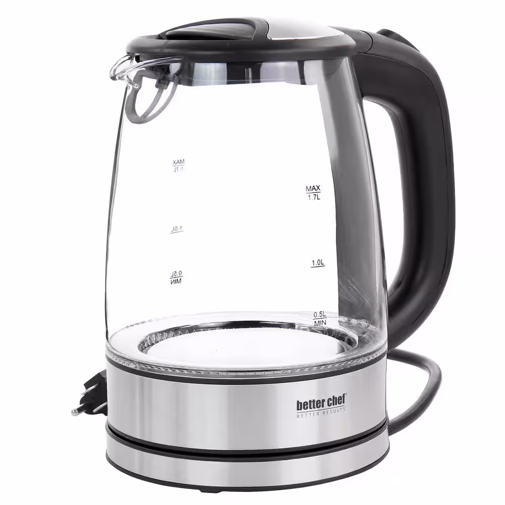Better Chef 1.7 Liter 360 Degree Clear Glass Cordless Electric Kettle