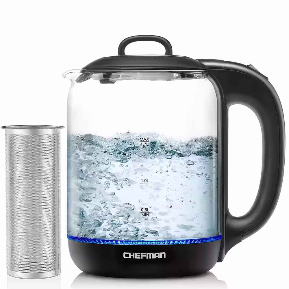 Chefman 7 Cup Black Electric Kettle with Tea Infuser, 1.7L